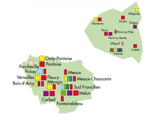 Carte des établissements pénitentiaires - DI de Paris.